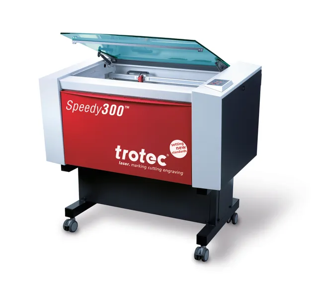 Trotec Speedy 300 CO₂ laser engraving machine with red and white housing